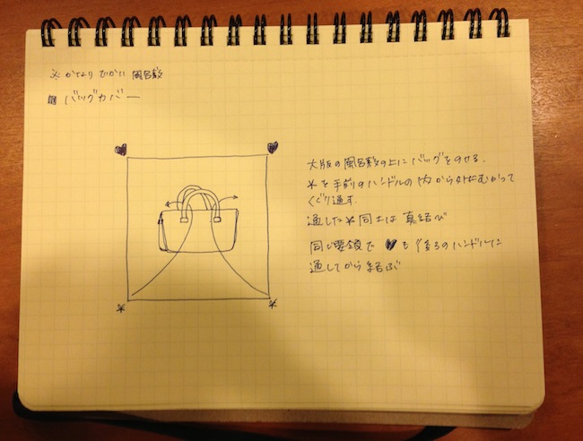 いいバッグ(高価なバッグともいう)を持って歩いてる時に限って、急に雨が降ったりするわけだが、そんな時も風呂敷1枚あればブルーにならずに済む。